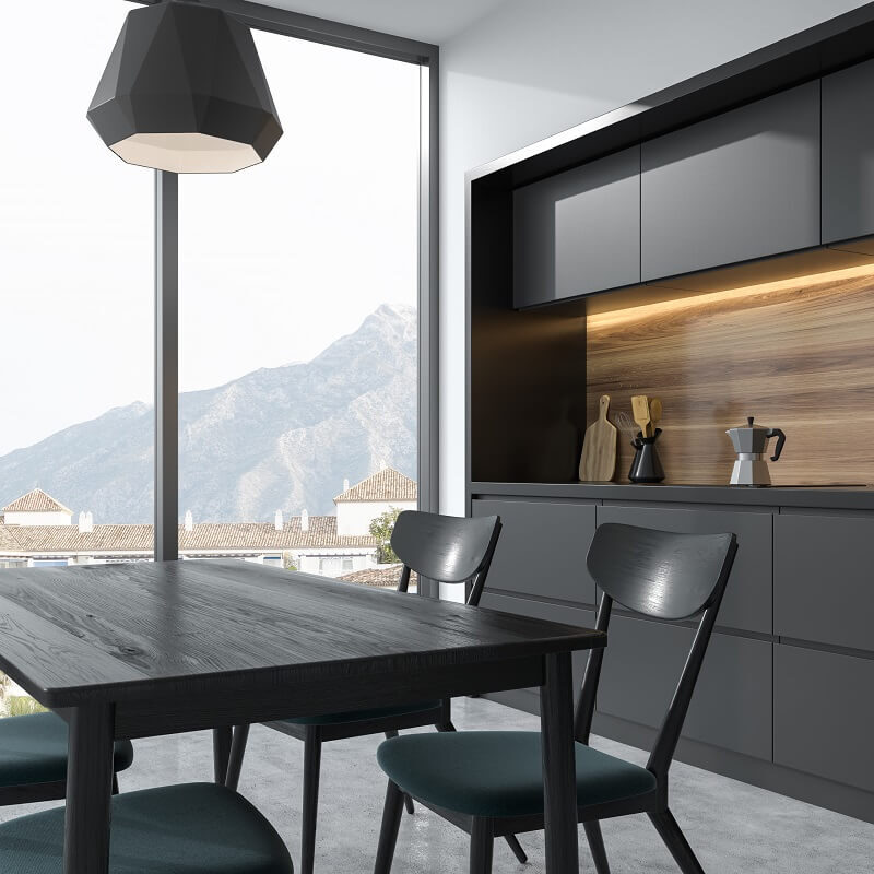 Customizable, energy-efficient lighting that enhances both the mood and practicality of the kitchen space.